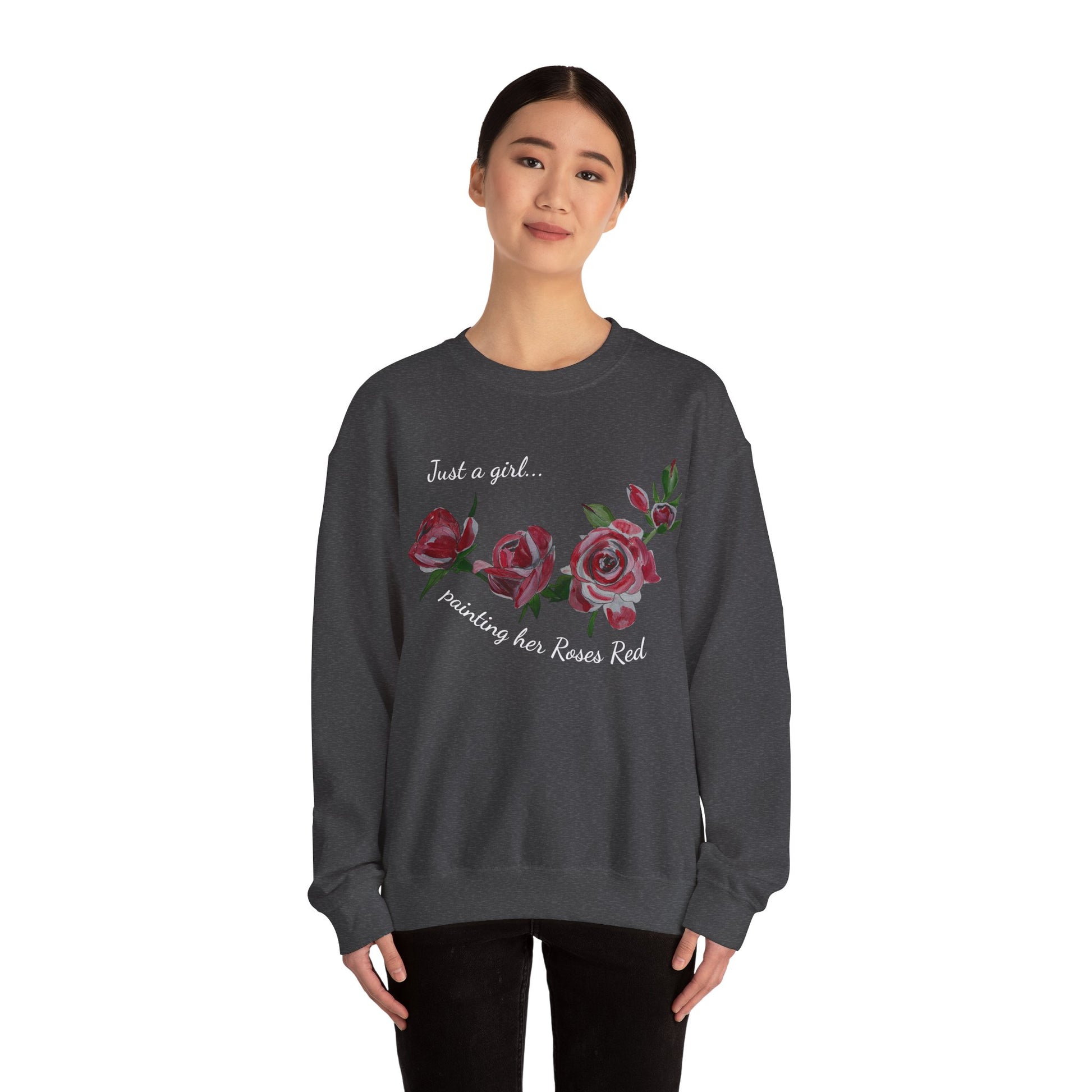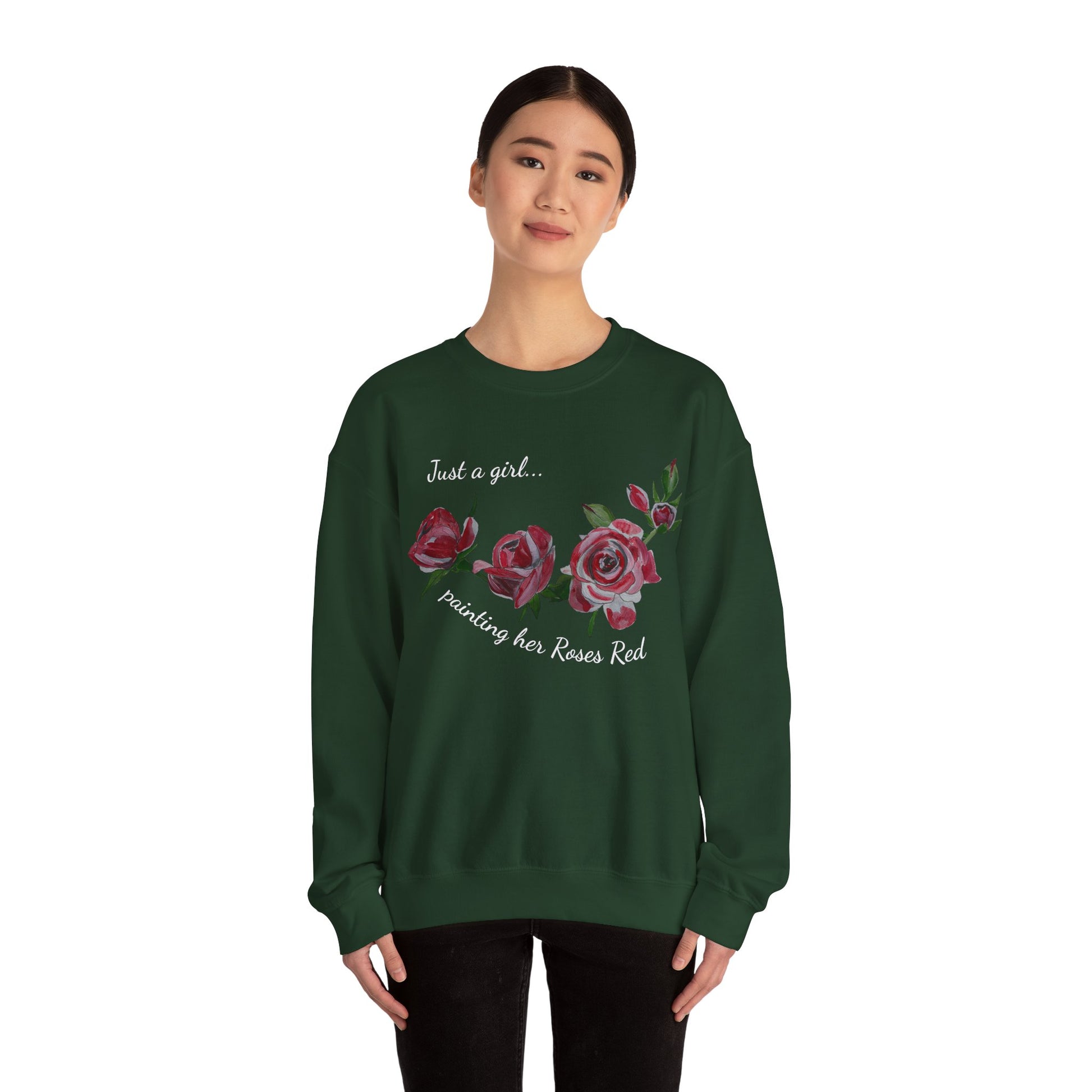Just a Girl Painting Her Roses Red sweatshirt | Floral Rose Crewneck - Alice in Wonderland