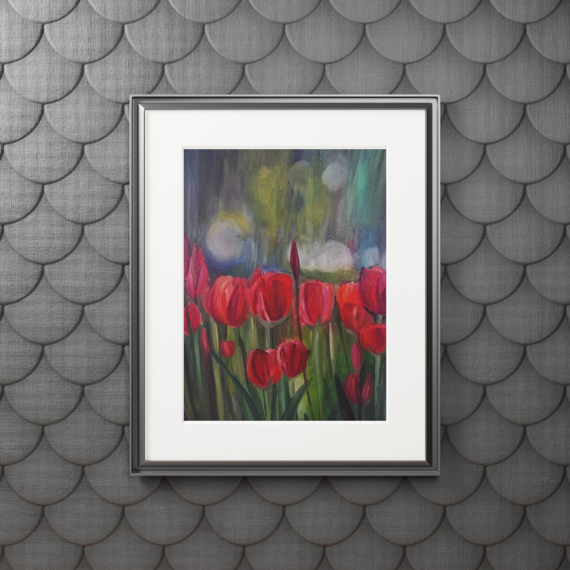 Red Tulip Field Fine Art Print | Passepartout Paper Frame