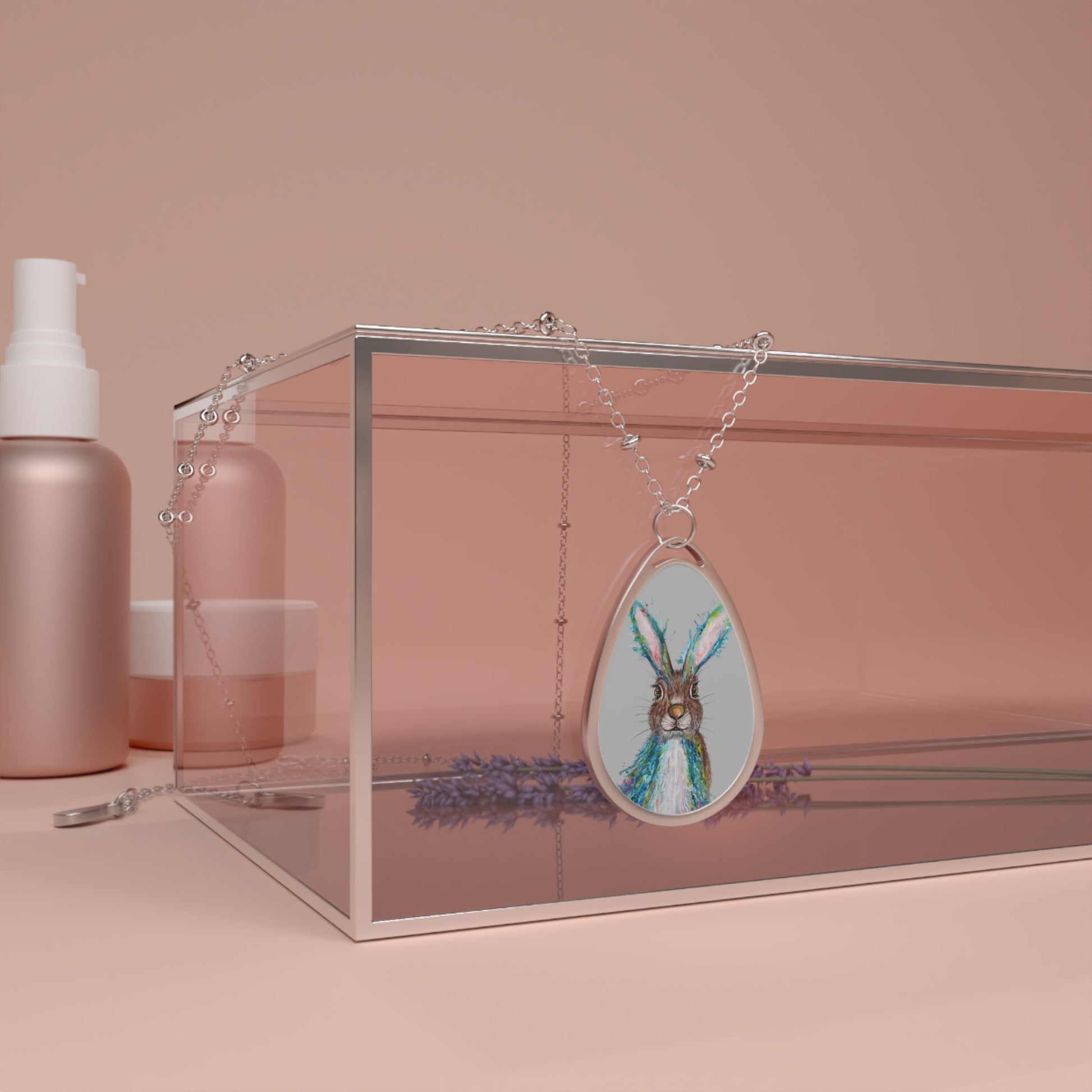 Whimsical Watercolor Hare Oval Necklace | Bunny Pendant, Spring Jewelry