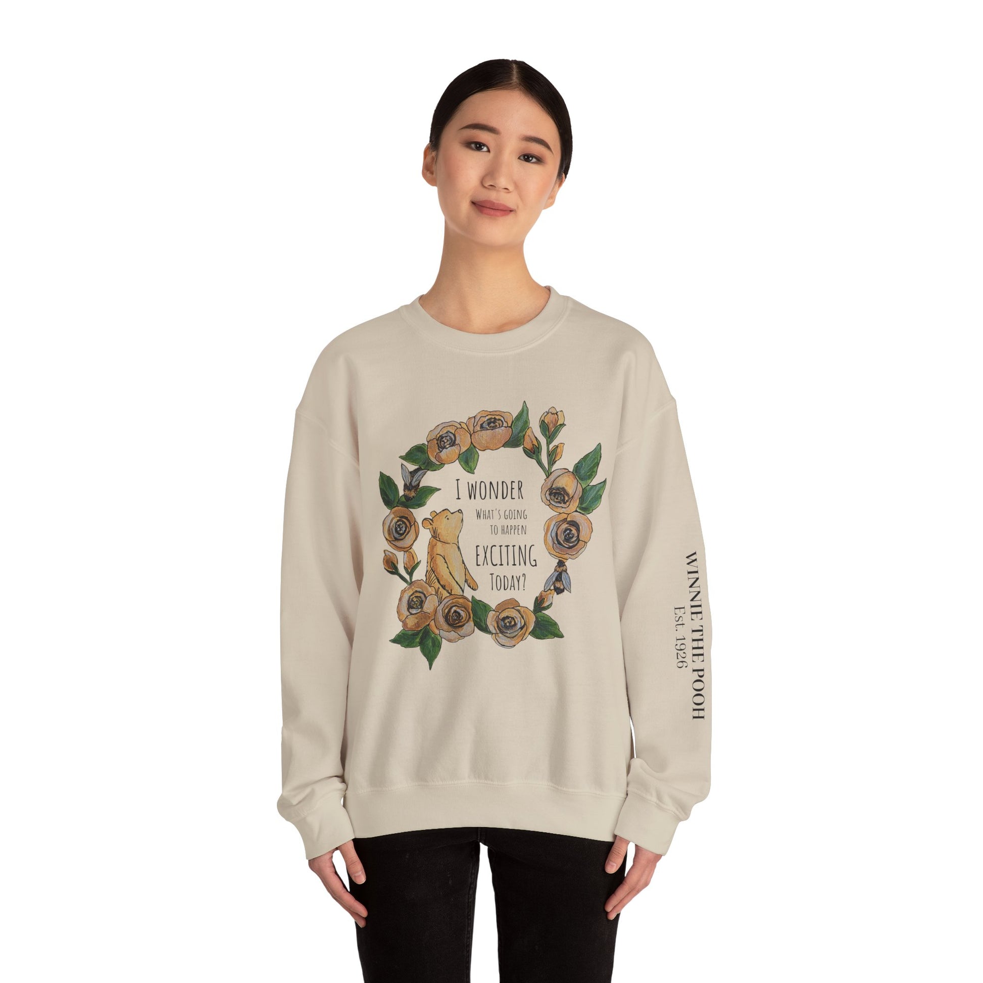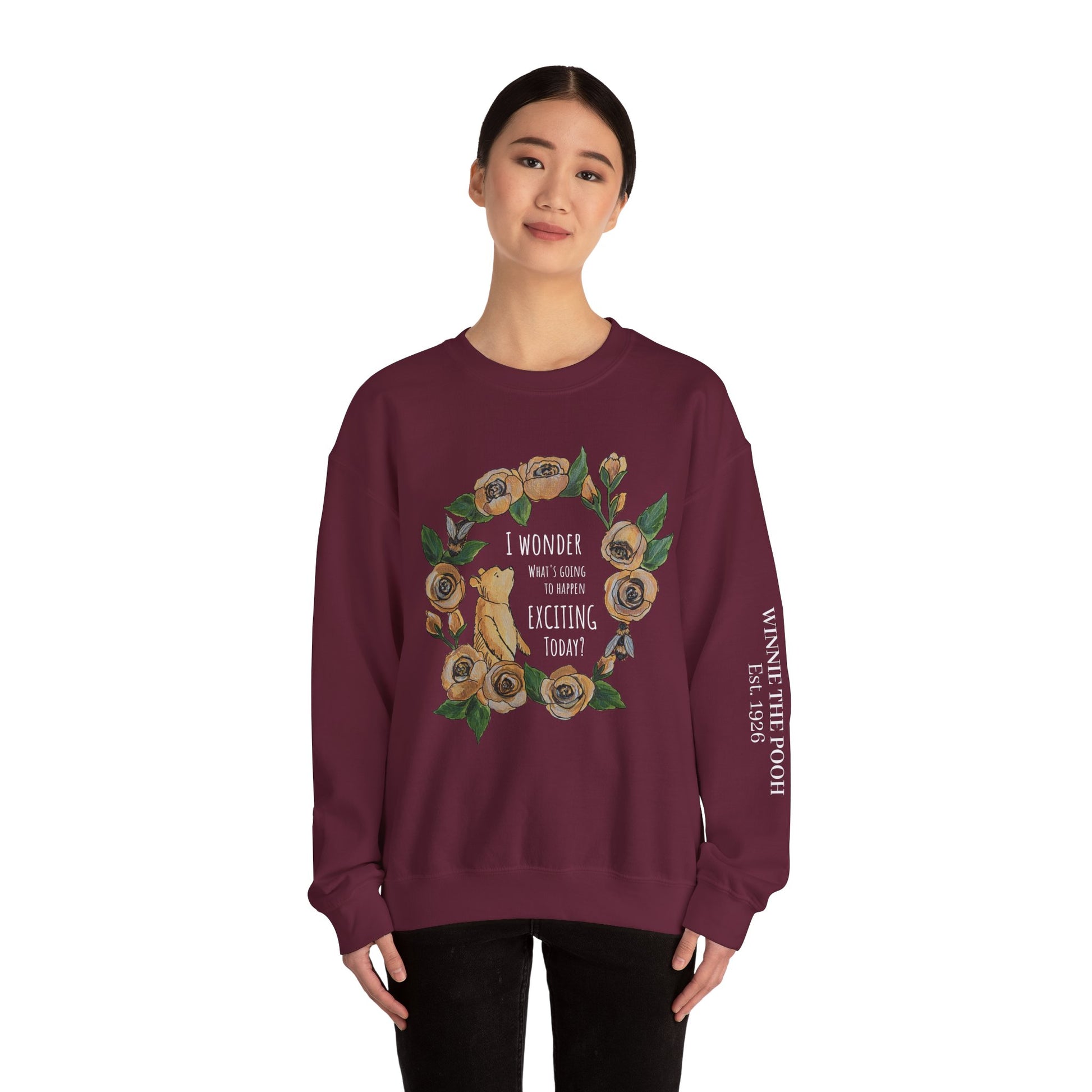 Winnie the Pooh Floral Wreath I Wonder What Exciting Things Today Sweatshirt